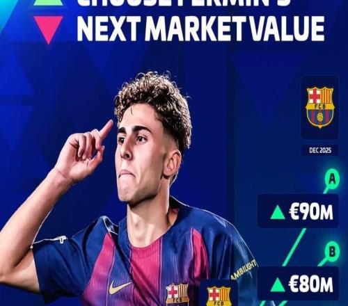 德转预热费尔明身价更新:最高上涨至9000万欧,最低7000万